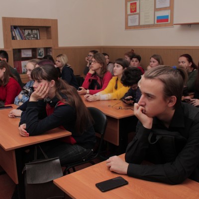 Актовый зал. Торжественная линейка. Звучит Гимн России, поздравление директора училища Образцовой О.В. Просмотр документального фильма «Героями не рождаются, героями становятся в час испытаний». В исполнении творческих коллективов училища звучат песни и мелодии, посвящённые нашей многонациональной стране.