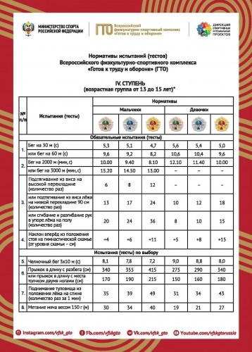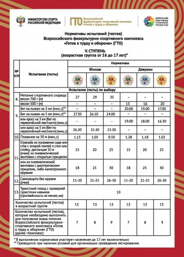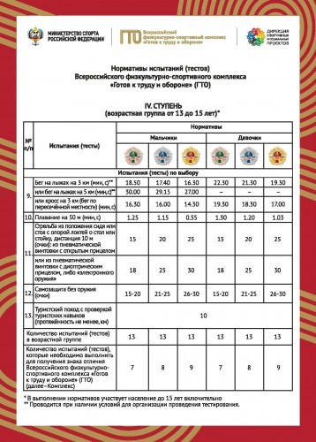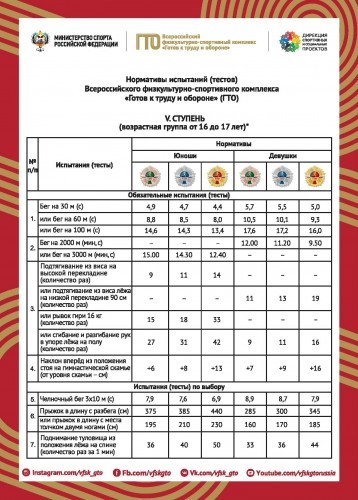 Современный всероссийский физкультурно-спортивный комплекс «Готов к труду и обороне» состоит из 11 ступеней в соответствии с возрастными группами населения от 6 до 70 лет и старше и нормативов по 3 уровням трудности, соответствующих золотому, серебряному и бронзовому знакам. Лицам, принявшим участие, но не выполнившим нормативы на бронзовый знак отличия, вручается знак Комплекса ГТО – «Участник».