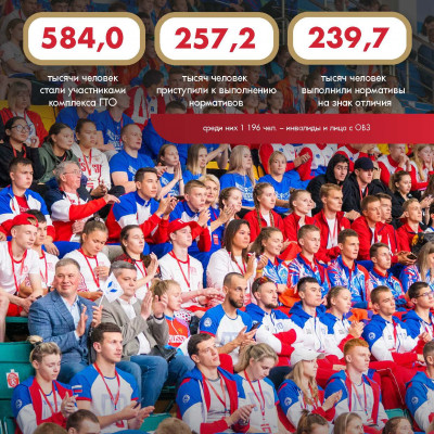За последние 10 лет к движению ГТО присоединились более 22,1 млн человек. Из них 13,6 млн приняли участие в выполнении нормативов ГТО, 10,2 млн получили знаки отличия;