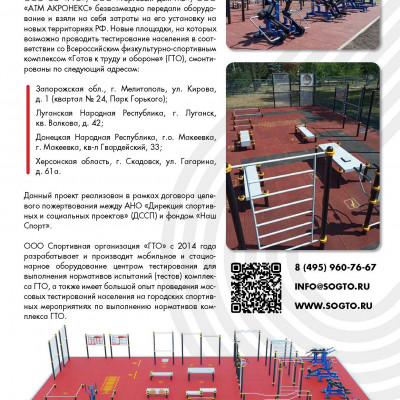В частности, за период с 2019 по 2023 годы в рамках федерального проекта «Спорт – норма жизни» национального проекта «Демография» в Воронежской области было создано 36 малых спортивных площадок для выполнения нормативов комплекса ГТО. Таким образом на сегодняшний день приобщиться к Всероссийскому комплексу могут жители практически всех муниципальных образований.